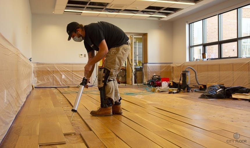 When refinishing a hardwood floor City J Hardwood Floors generally follows the same process