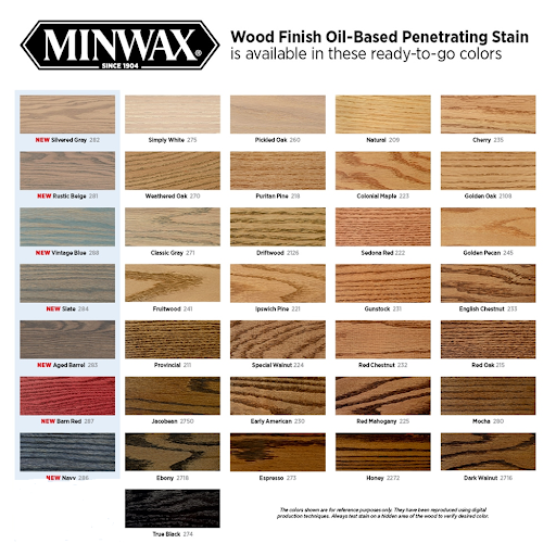 Some popular wood stain colors include: dark wood stain, weathered oak stain, gray wood stain, cherry wood stain, golden oak stain, white oak stain and red oak stain.